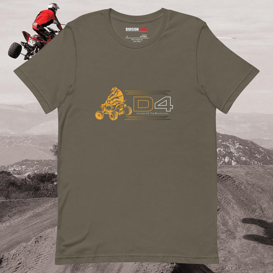Division 4 was a clothing company started by Wes Miller of H-Bomb Films, the Bomb Squad, and the “Huevos” video series. As a quad racer himself, he wanted to create a clothing brand that was made by quad riders for quad riders. Prior to that, the only choice was for ATV enthusiasts to wear apparel made by 2 wheel dirt bike brands. The tag line was “Leaders of the Revolution” and it was meant to unite quad riders to fight the tyranny of the 2 wheeled market. The brand became synonymous with the “Huevos” videos and was worn by many of the top ATV riders of the time.